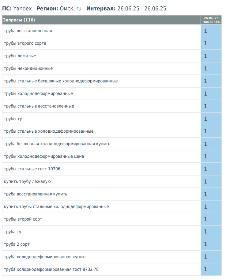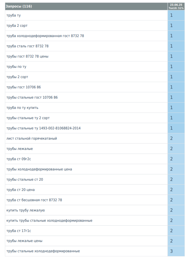 Клиент — производственная компания, занимающаяся поставкой стальных труб по всей России. На момент начала работ у клиента был сайт на Tilda, однако он не подходил для полноценного SEO-продвижения и не приносил стабильного потока заявок.