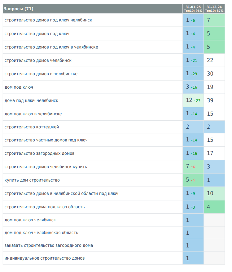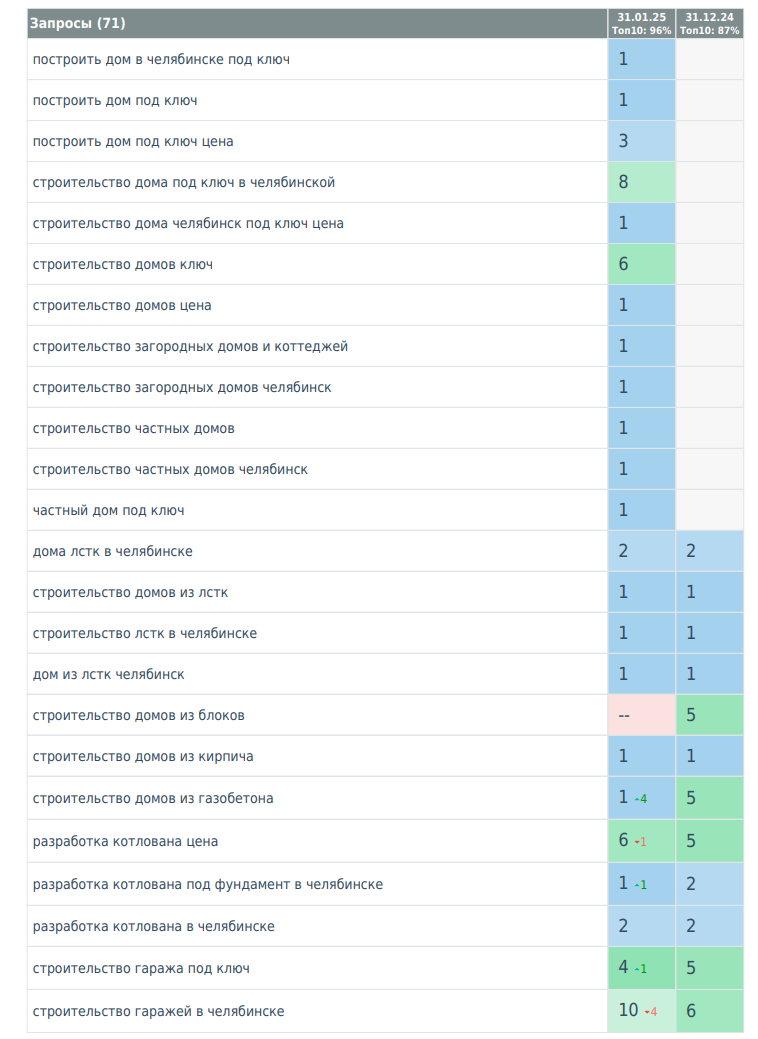 Задача — разработать сайт, охватывающий как услуги строительства, так и проекты в поселке, и вывести его в ТОП Яндекса по коммерческим запросам.